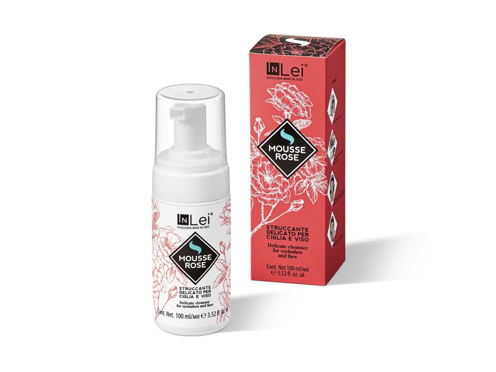 InLei® „MOUSSE ROSE“ je inovativní produkt pro péči o přírodní a umělé řasy a jejich čištění. Tato pěna je vhodná ke každodennímu čištění obličeje a dekoltu a je vhodná pro všechny typy pleti, od nejmladších po ty nejzralejší. Aktivní látkou této čisticí pěny je Růže damašská, která je skutečně univerzálním prostředkem péče o pleť: tonizuje a čistí pleť, má silné čisticí vlastnosti, dodává pružnost a účinně působí proti stárnutí kůže.